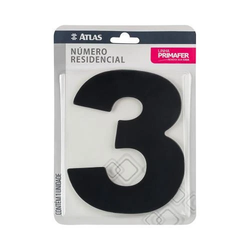 NÚMERO RESIDENCIAL COM ADESIVO PRETO 3 – ATLAS